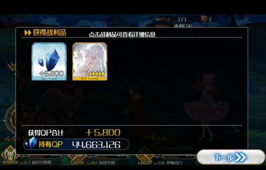 选择放弃就是失去了5ap换来的是月神的又一次可能掉落。还是同样重复上述步骤直到出了金箱子。