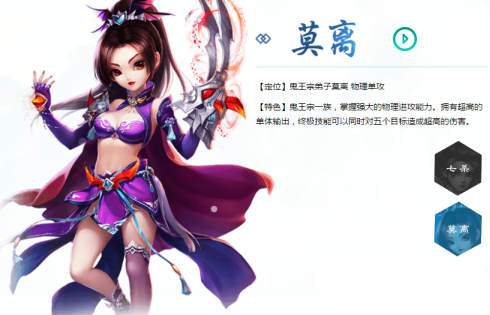 【特色】鬼王宗一族,掌握强大的物理进攻能力。拥有超高的单体输出,终极技能可以同时对五个目标造成超高的伤害。