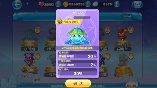 水叶泡是新的元素宝贝系列精灵,收集2个以上的精灵可触发套装效果。