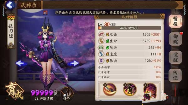 ssr乃目前为止从未出现过的类型,据说是,光是格挡这一点就足以说明是个合格的肉盾。肉盾,格挡,完全就是为了顶住一波流第一回合的狂轰乱炸,在第二个回合buff一个核心式神,3回合后爆发打后手一波,速度对这个ssr来说完全是鸡肋的属性。