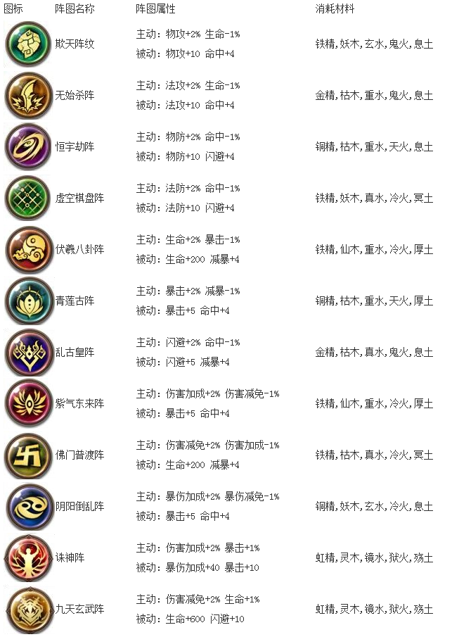 阵图获取方法:获取阵图需要消耗指定材料,所需材料如下:
