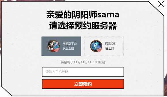 前往阴阳师手游官网,点击下方“新区集结 预约豪礼”。