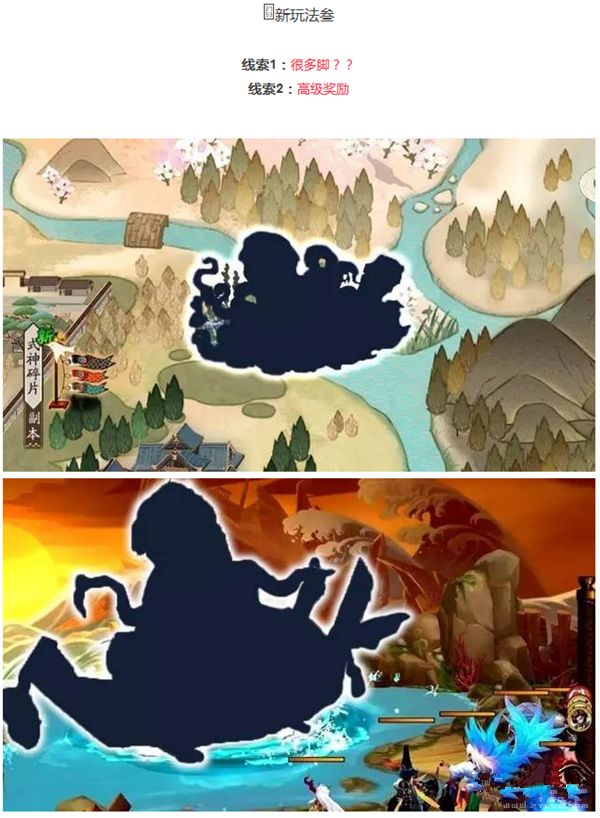 在最新的官方玩法爆料中,一种提示线索为“线索1:很多脚??线索2:高级奖励”的玩法证明了新世界boss玩法即将于11月11日上线。