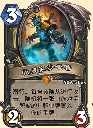 潜行,每当该随从进行攻击,随机将一张(你对手职业的)职业卡牌置入你的手牌。
