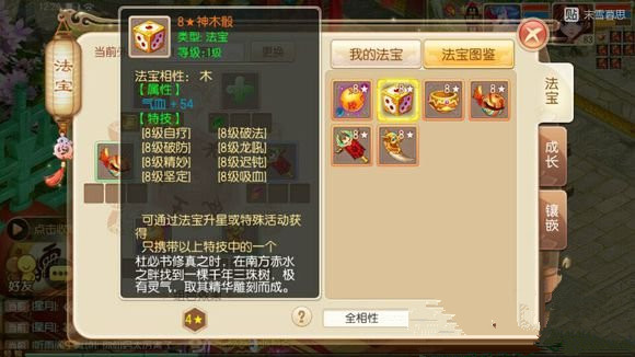 诛仙剑法宝技能推荐:法术攻击敌方单体目标50%几率造成2倍伤害,50%几率治疗目标