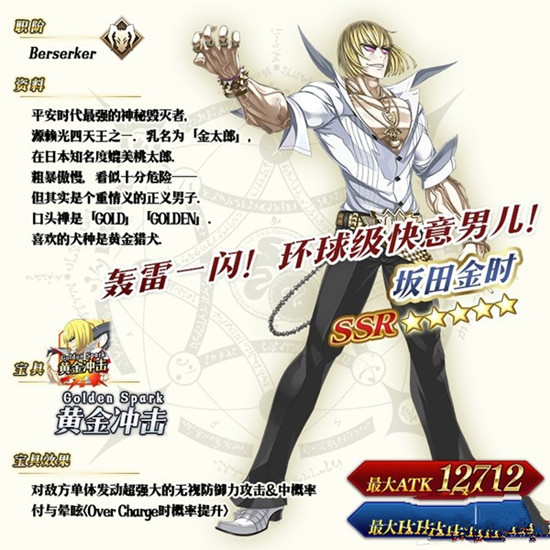很多人问金时好在哪里~怎么说呢? 我的观点是这样的,金时强就强在 会说话且有趣的狂阶(B叔嚎叫简直精神污染),狂气,五星巴萨卡,自充能,不残疾的NP率,宝具高伤无视防御还带眩晕