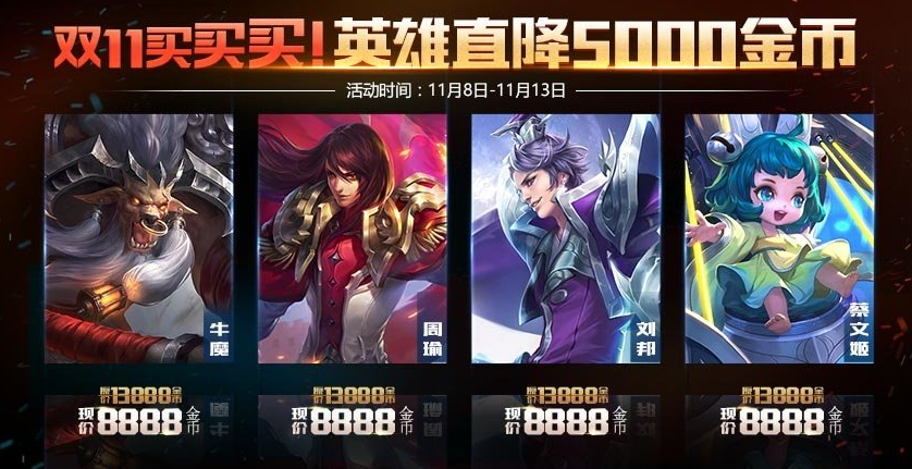 折扣英雄:牛魔、周瑜、刘邦、蔡文姬;
