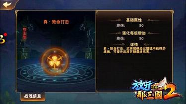 但是每次猎魂都需要消耗大量的银币,只有银币充足的玩家才能大量的去猎魂,不过猎魂必定可以获得战魂。而吴国阵营和群雄阵营的玩家如果想要去猎魂,可能会陷入劣势,因为魔化的武将会免疫中毒和灼烧,这将会使吴国和群雄阵营的武将的优势发挥不出来。因此这两个阵营的玩家可能得多提升战力才能去参与猎魂。