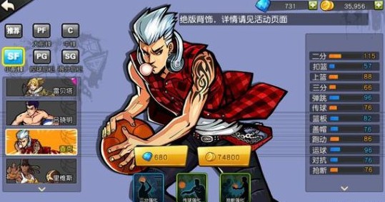 初始sf,说实话也是我最不喜欢的一个人物,因为 玩天梯是看到 这个上半身没衣服的男人 我已经输一半了,新手最爱用的角色,特点喜欢自己一个人运球 然后不是被断就是自己投篮被盖,说多无意,大家还是早点放弃这个角色吧,情怀也别练 坑队友不说还坑自己。当然也有大神存在,小明同学不是第一就是倒数第一。