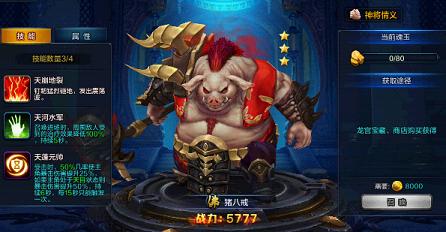 大圣之怒九游版中猪八戒有些什么技能,大圣之怒九游版神将猪八戒介绍。在大圣之怒九游版中,神将初始最高为4星,可以通过穿戴装备升阶,通过消耗魂玉升星,最终达到5星橙色神将。猪八戒初始为白色三星,下面跟西西一起来看下猪八戒的技能介绍和属性吧!