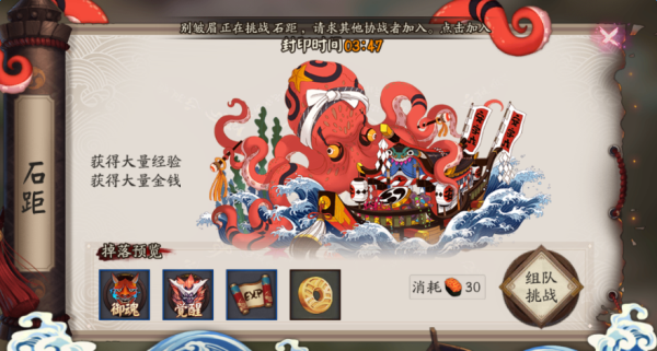 庭院组队石距 需要消耗30体力,每隔一小时可挑战一次。