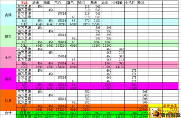 平民的话,永久卡+月卡每天能领100元宝,在线时间每天220,一周就是2240元宝,平均3周能升级成功一个10级。看下图10级星魂加的属性,太变态了,并且只须充元宝无脑升级就可以。土豪们不需再砸炼器了,冲钱搞星魂可以了。