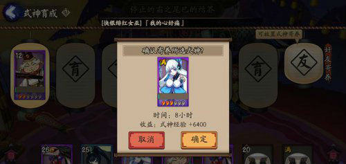 同时,置入式神,系统会给予提示,比如雪女,必须要满8小时,才可以获取到最后的经验收益。