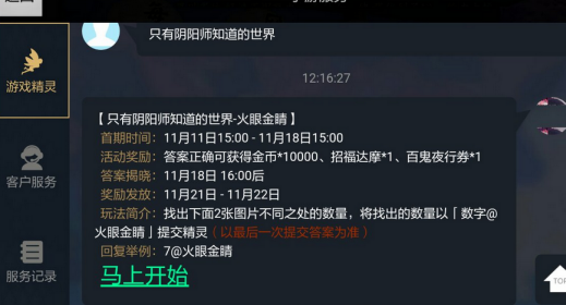 只有阴阳师知道的世界火眼金睛活动时间:截止:11月18日15:00