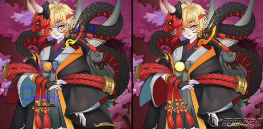 游戏精灵会给出两种图片,玩家需要找到2张图的不同的地方,然后将找出的不同之处以“数字@火眼金睛”提交给游戏精灵就行了。