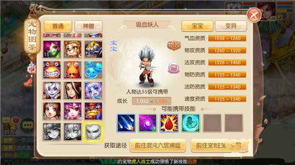 吸血妖人是55级的攻击宠物,其物攻资质不错,但是气血和速度资质差劲。