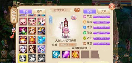 守灵女弟子是一个45级才能携带的宠物,其特别之处在于带有物攻技能――剑荡八方。