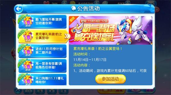 豹之云翼需要通过11月14日00:00~11月17日23:59期间的累计充值活动获取,累计充值满300钻石可获得飞天云豹坐骑配饰豹之云翼。