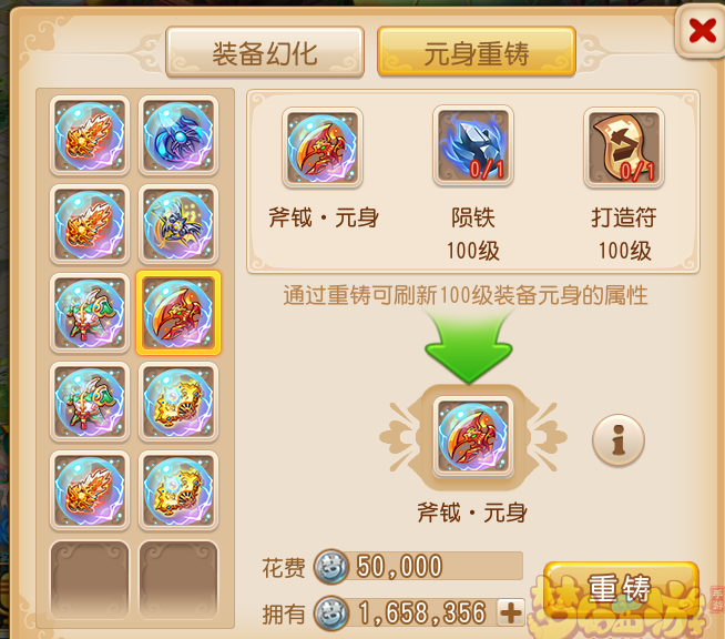 答:使用90珍品装备一件,然后消耗一定的百级陨铁和百级书就可以进行幻化了。