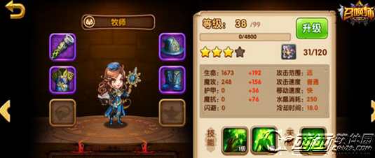 大部分阵容首选的回复型辅助,优秀的技能和天赋使她的奶量充足,在队伍中带上牧师绝不会吃亏!称她是《召唤师》的“最强奶”一点也不为过!在任何队伍中都能发挥作用,而且属于新手教程中赠送的英雄,不存在入手难度的问题,升星和升级的优先度也很高,无论是推图还是副本,甚至是竞技场都有她的出场机会!