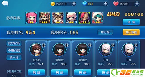 2. 玩家可选择排名相近的一方发起挑战,胜利增加分数,失败扣除分数