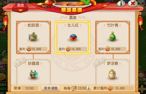 7、帮派签到奖励调整:每日在帮派福利界面中进行帮派签到可以获得5000银币,同时将会有几率获得金柳露、强化石、彩果等道具。