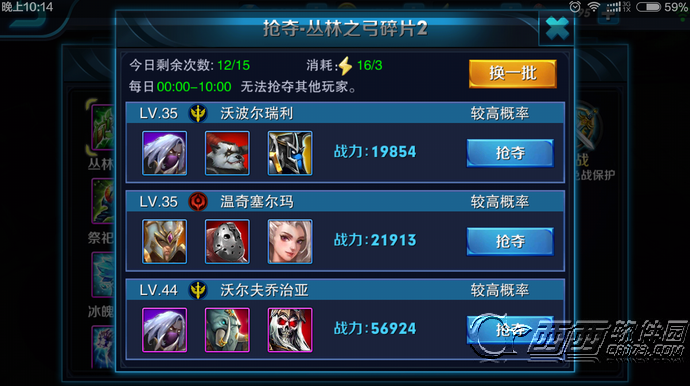 如何获得这些神器碎片呢?当然只有一个字:抢!你需要从电脑也就是系统设置的机器人手中或是更加厉害的玩家手中抢夺碎片,每一次的抢夺都会花费掉你一部分精力值,挑战敌人成功即可抢夺对方手中的碎片。随着神器等级的提高,需要抢夺的碎片也会越来越多,这时候玩家就不可能在耗费掉所有的精力值之前抢夺完所需的所有碎片。这时候就是考验玩家谋略的时刻,当然你也可以使用免战保护,但是这也是有时效性和CD的。