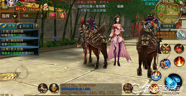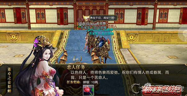 西西的第二个任务是要跟恋人一起找到董卓之妾貂蝉美女。是不是很有趣呢,也很容易完成。告诉大家一个省力的小窍门,队长点击任务自动寻路,而队员只需要点击跟随就很方便。