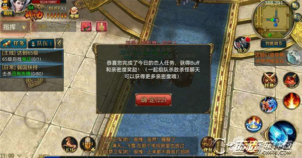 三轮任务完成以后,系统就会提示呢。并且获得了buff与亲密度的奖励。在这里需要提醒大家的是,增加亲密度的方式有很多,除了【恋人任务】以外,还有组队一起打怪,聊天,家族淬炼都是可以增加亲密度的。