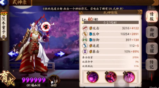 阴阳师6星满级茨木童子属性