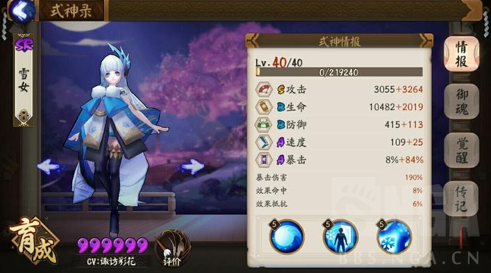 阴阳师6星满级雪女属性一览