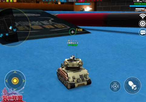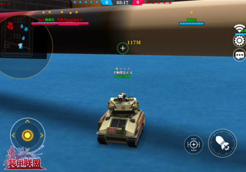 然后,如果你的坦克拥有远程瞄准功能,那就可以远距离狙杀场地中间的坦克了。(开炮旁边的按钮就是瞄准镜)