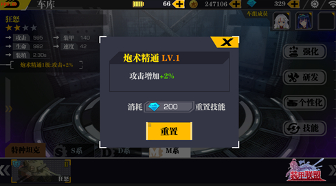 值得一提的是,坦克的技能可以花费200钻石进行重置。坦克技能重置后,有概率获得新技能。