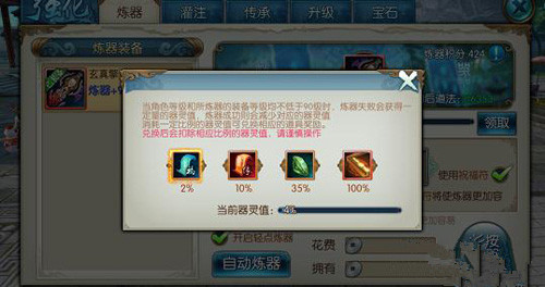 等我们的等级和炼器的装备等级不低于90级的时候,器灵值就会生效了,这个时候,我们炼器失败的话,就会获得相对应的炼器值,成功的话,就会减少一定的炼器值