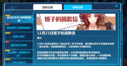 司令部发现,11月21日开放逃出生天活动关后,部分舰长会遇到报错,无法结算的情况。