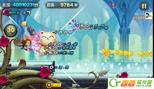 角色换成猫小魅,宝物带死神镰刀+梦幻水晶+碧蓝船锚,分数不高。