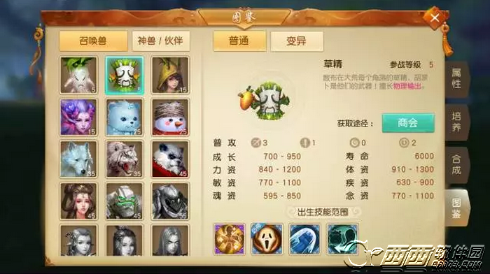 源宝宝一般使用草精或者草娃,其中草娃成长资质稍高