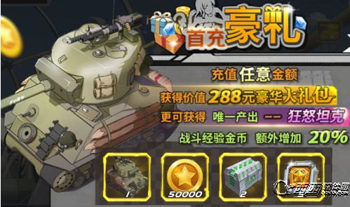 首冲礼包坦克狂怒(中坦四星A级)或其他4星特种坦克 + 任意学院(为狂怒战斗力考虑选老虎D学院)开局