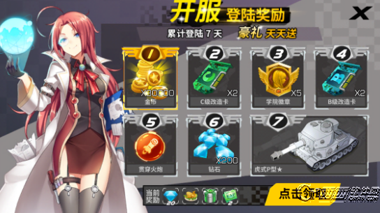 七日签到奖励虎P(重坦克五星A级) + 任意学院(为虎P战力选秃鹰M学院)开局