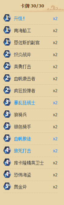 而恐怖海盗作为这套卡组里唯一的嘲讽牌,是作为防守的唯一方式,配合武器可以达到减费的效果,在对拼的时候放出来或许是个致胜的关键。
