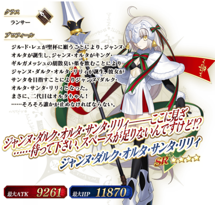 ※需要在圣诞老人贞德alter(lily)正式加入后,才能用「树干蛋糕」交换其余的圣诞老人贞德alter(lily)。