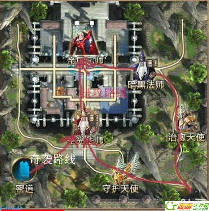 也可以击破瞭望平原的密道,击破以后可以直达王城到时候可以先行选择击杀两个天使,抢下复活点,不然死亡后原地复活会出现在边塞重新跑回王城,很耗费时间。并且密道打通后果五分钟又会重新变成巨石需要重新打通。所以必须在五分钟之内抢占下守护天使刷新复活点。因为两个天使一旦打下不能被对面夺回。