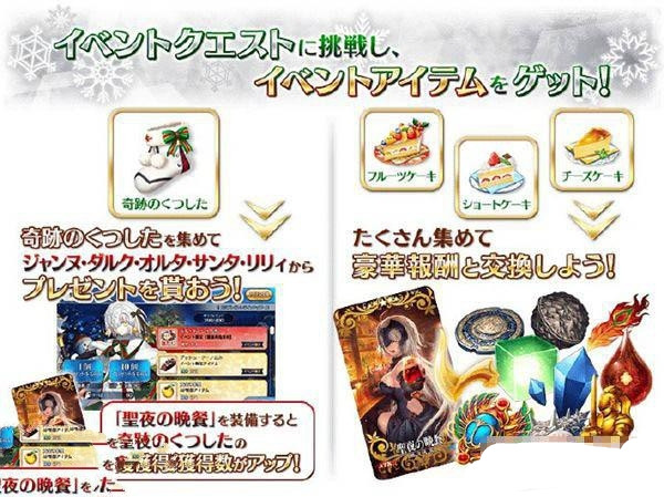 2、收集分层蛋糕、水果蛋糕、奶酪蛋糕→商店交换item(特攻servant和限定卡池礼装可以增加掉落)