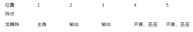阵法分析:青云门和焚香谷是法术攻击职业,所以选择1号位增加法伤或伤害的阵法,龙腾阵是增加1号位输出最多的法阵,而且其他位置的属性加成也很均衡既有提高伤害的也有减免伤害的,是青云门和焚香谷的首选法阵。