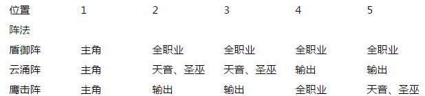 阵法分析:天音是阵容中的奶妈,主要负责给输出加气血或复活牺牲的角色或宠物。所以需要保证天音的生存能力才能使其发挥更大的作用。盾御阵和云涌阵就可以提高天音的生存能力,区别就是盾御阵是减免5个位置所受到的伤害,是纯防御性阵法,而云涌阵攻防兼备更全面,玩家可以根据自己的仙侣阵容来选择采用哪种阵法。