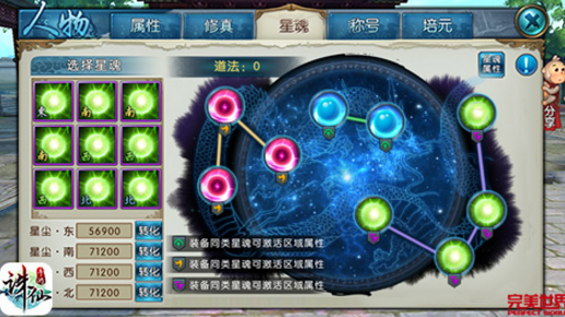 在诛仙手游里面,星魂分成了五种类型,分成了四个方位