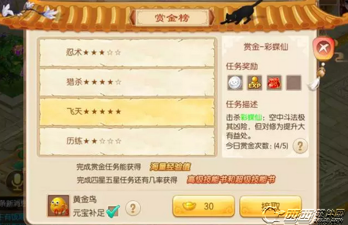 赏金这个任务大家需要知道的技巧就是巧妙运用手中的黄金鸟,因为5星的赏金任务是必给高级/超级书的,所以存一些黄金鸟,可以找一天人品爆发的时候大赚一笔~