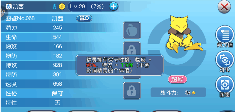 潜力自然是越高越好,但是也不能盲目的使用,比如,如果这只凯西的潜力个体全加了物理攻击与防御,那就完全没用了,因为凯西没有物理系技能,即使给他100的物理攻击个体也没用,所以,首先要特攻和速度个体高的凯西,然后再是性格(个体重于性格,如果实在没有好性格的,那就用特攻和速度个体高的,但是最好不要是减速性格)