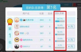 在团战模式中,团队贡献是你参与团战结束之后,根据你在团战中的表现,就是击杀数、长度等,来综合评定你对团队最终的获胜所给出的贡献值。