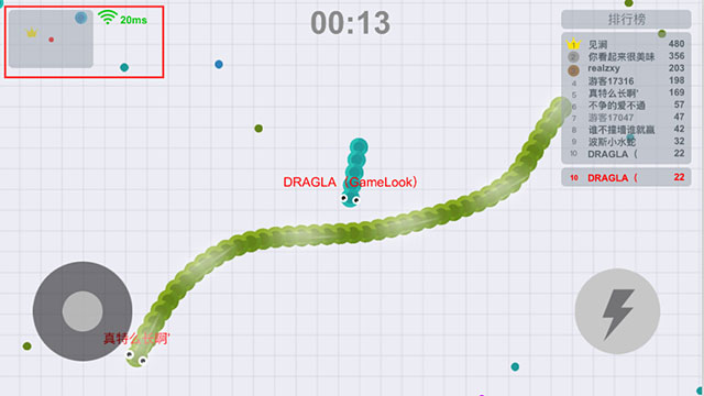 3.长按加速键,用巧妙的走位让蛇身被别人撞上,就可以吃掉他们啦。